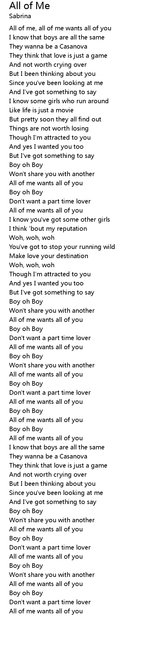 All of me, all of me wants all of you |