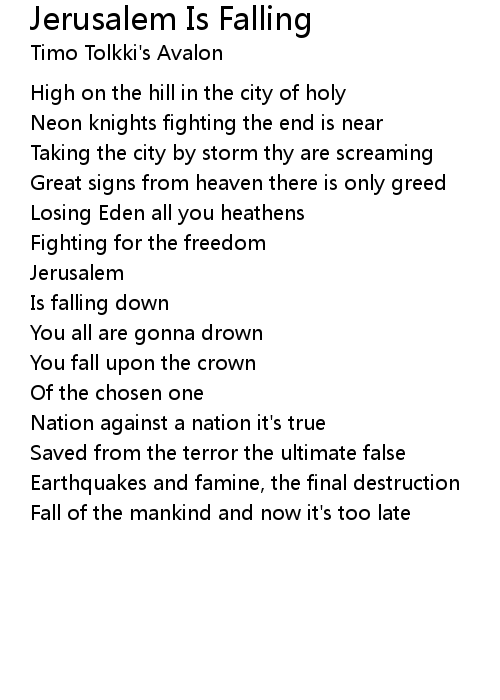| 歌曲 | Jerusalem Is Falling |