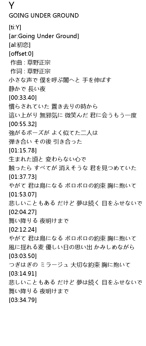 | [02:39.70] | やがて 君は鳥になる ボロボロの約束 胸に抱いて |