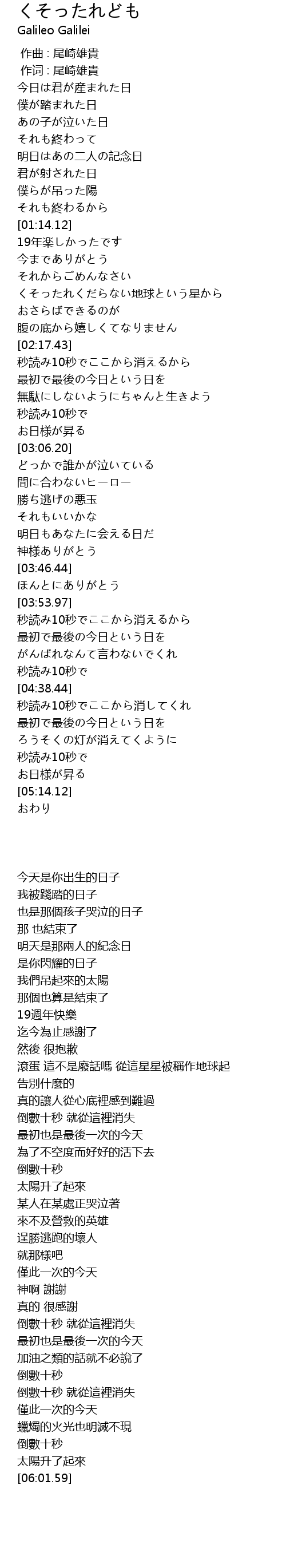 | 歌手 | Galileo Galilei |