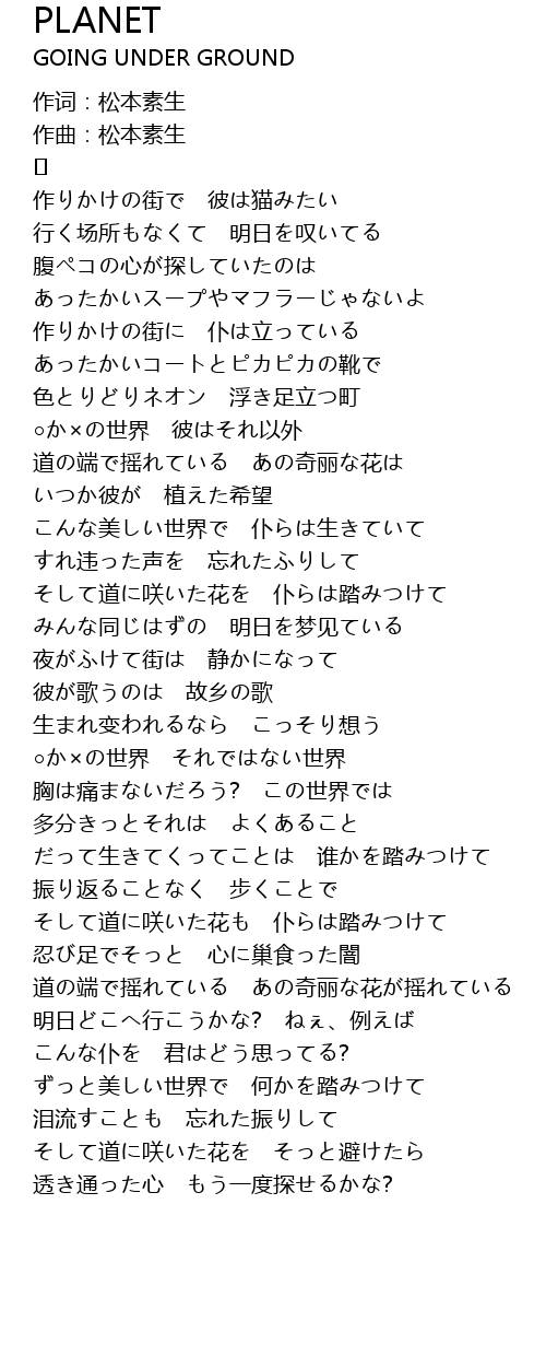 | そして道に咲いた花も 仆らは踏みつけて | |