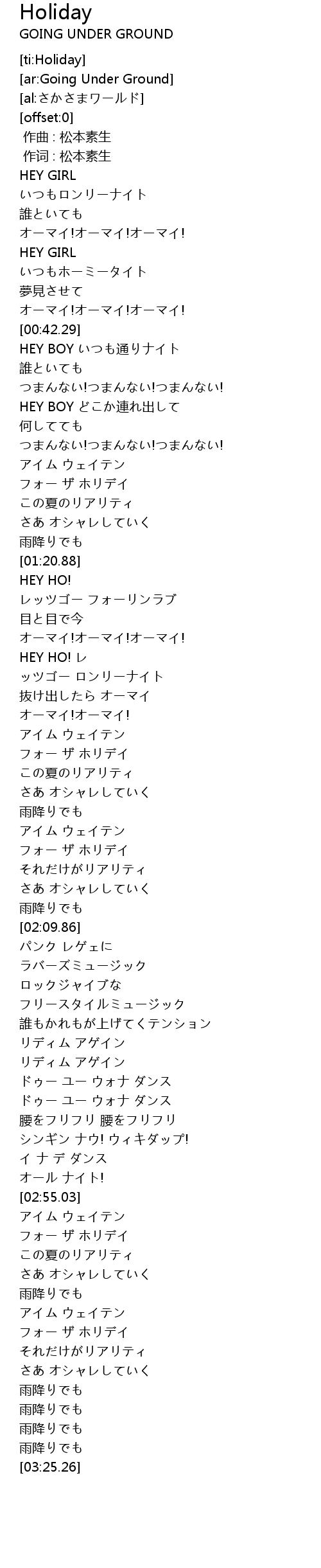 | [00:58.56] | HEY BOY どこか連れ出して |