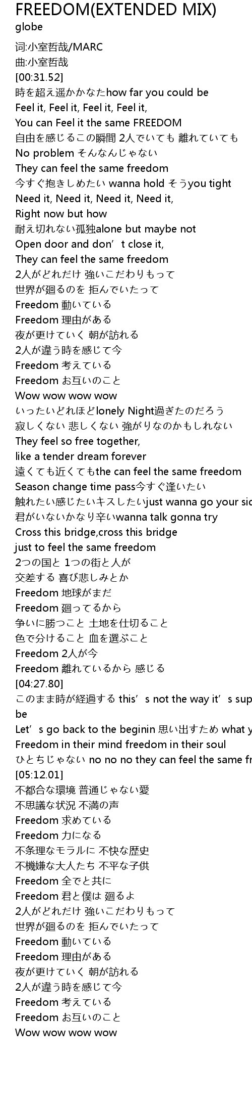 | [01:49.83] | You can Feel it the same FREEDOM |