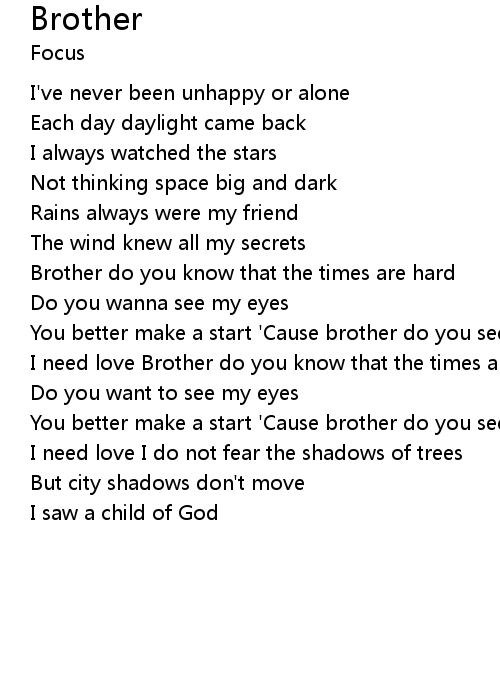 I need love Brother do you know that the times are hard |