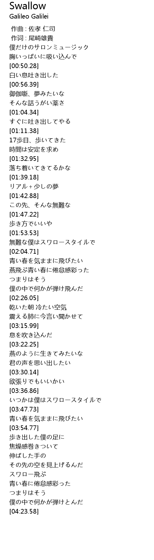 | [03:37.39] | いつかは僕はスワロースタイルで |
