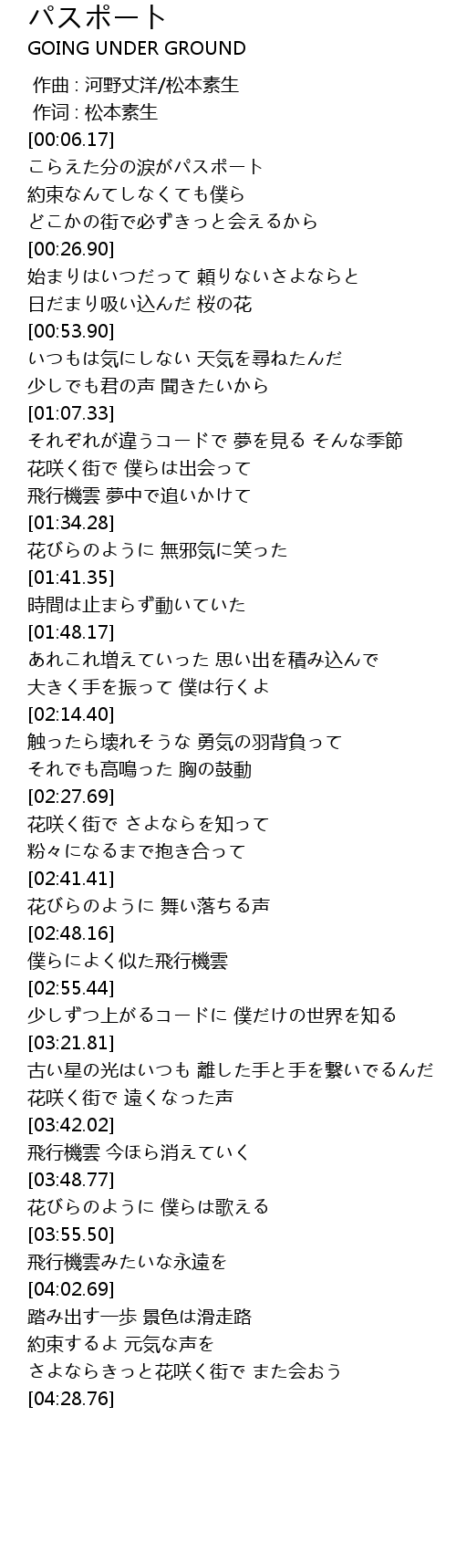 | [04:23.32] | さよならきっと花咲く街で また会おう |