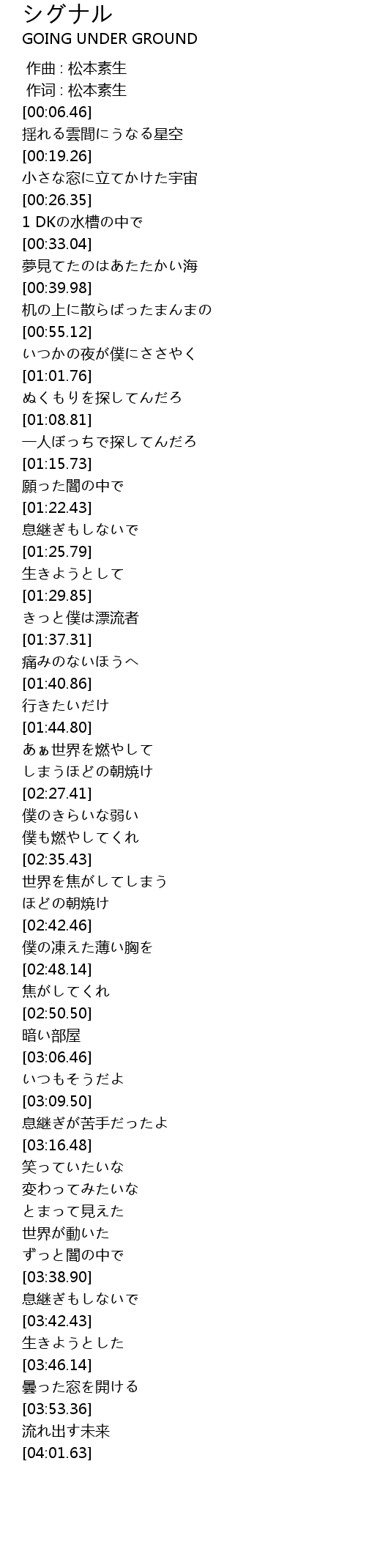 | [00:01.00] | 作词 : 松本素生 |