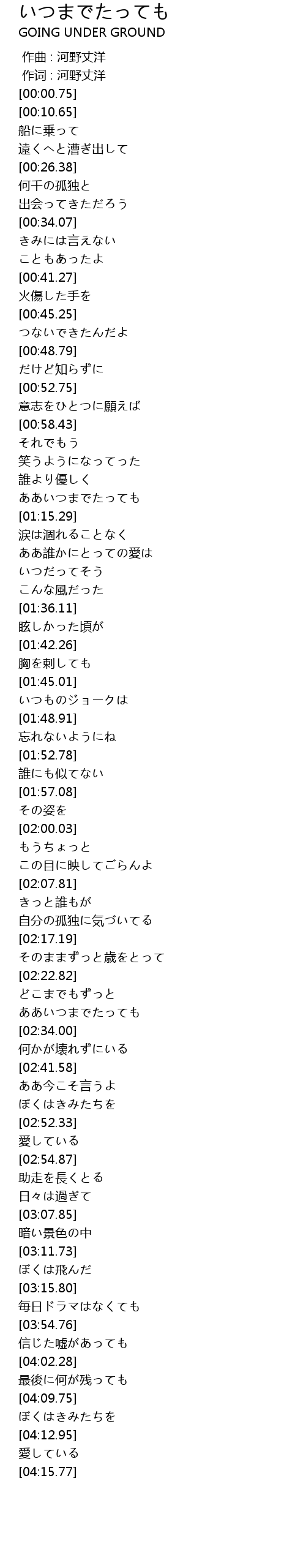 | [00:00.25] | 作词 : 河野丈洋 |