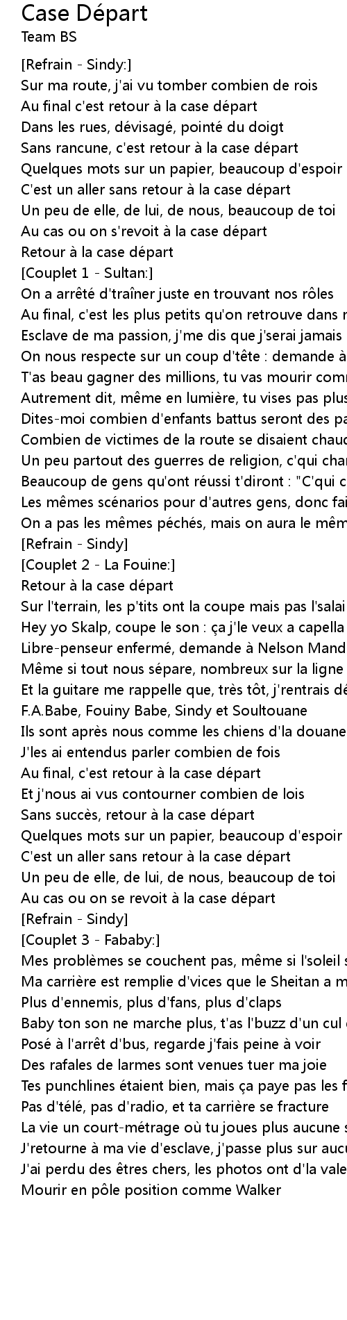 | 歌曲 | Case Départ |