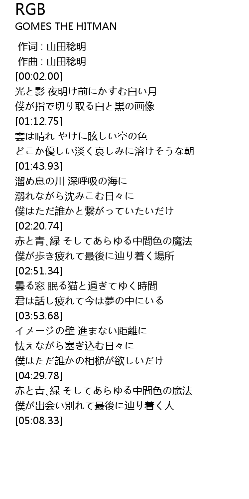 | [02:23.56] | 赤と青、緑 そしてあらゆる中間色の魔法 |