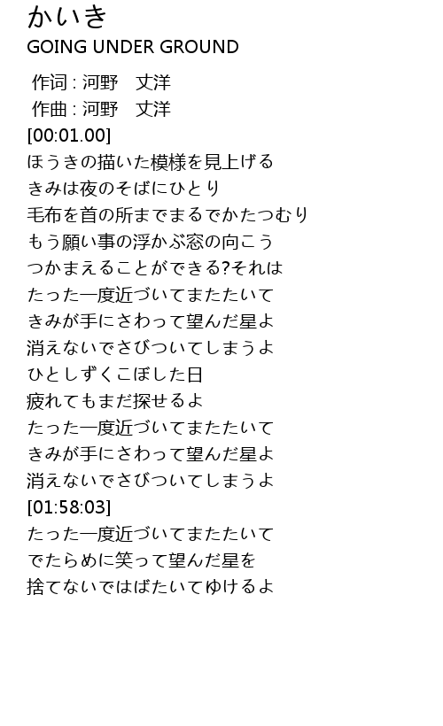 | [00:00.000] | 作词 : 河野 丈洋 |