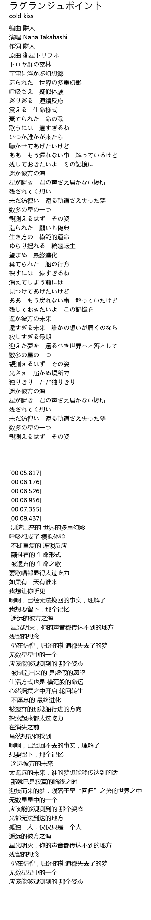 | [00:06.176] | 演唱 Nana Takahashi |