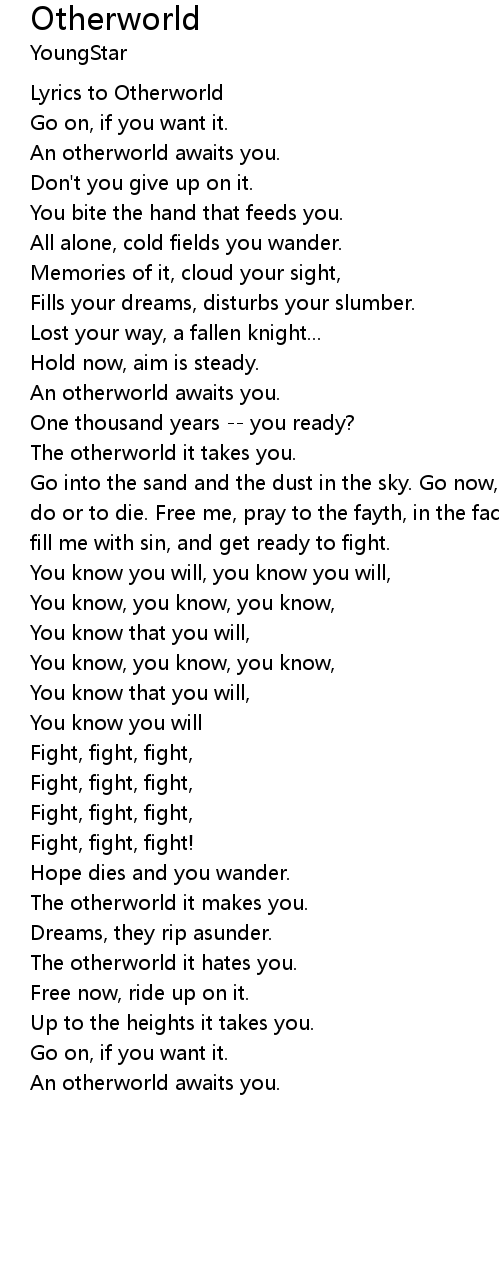 Lyrics to Otherworld
