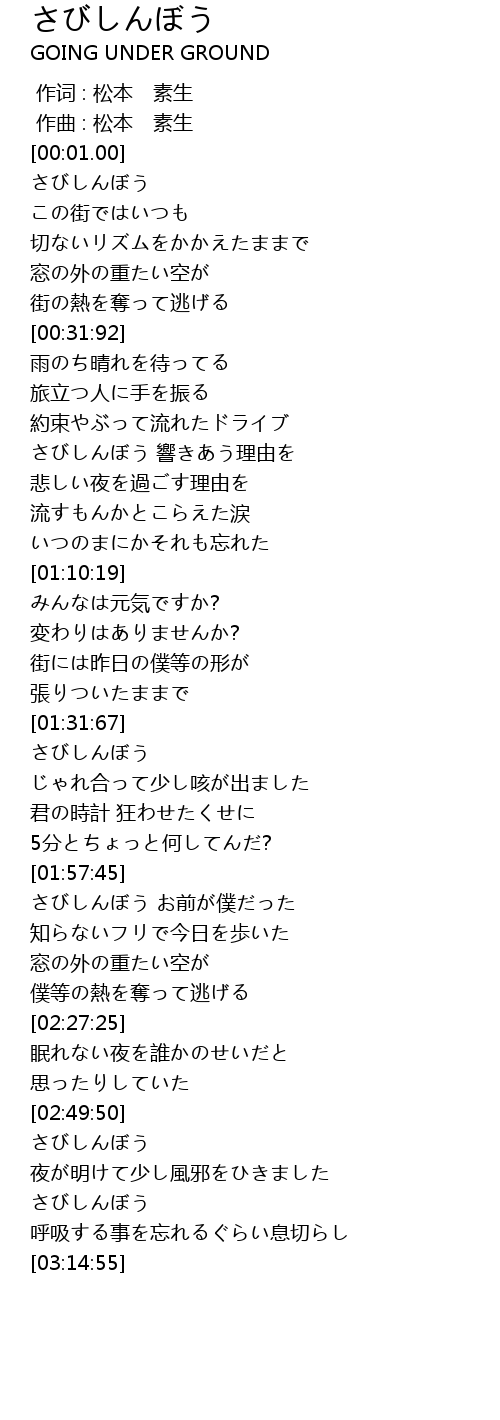 | [00:00.000] | 作词 : 松本 素生 |