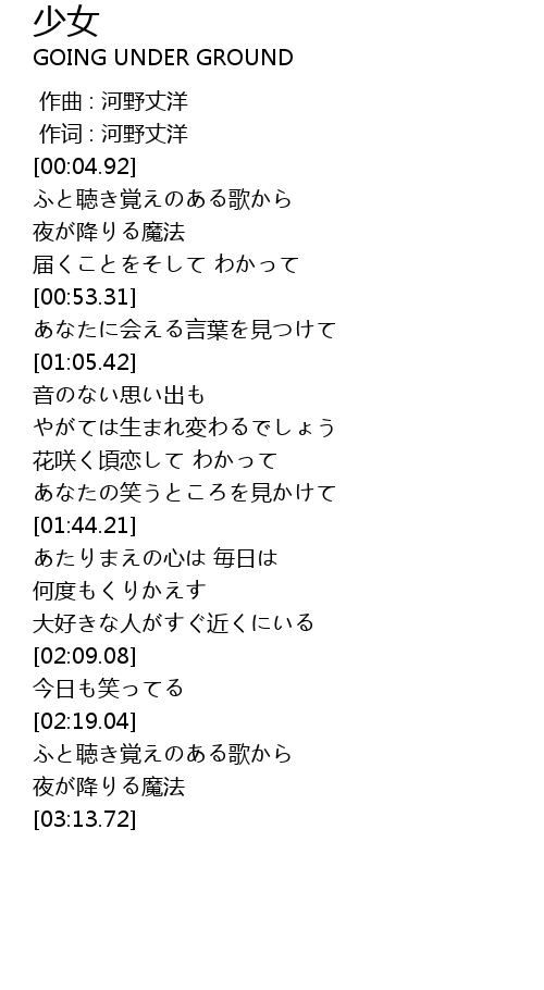 | [00:01.00] | 作词 : 河野丈洋 |