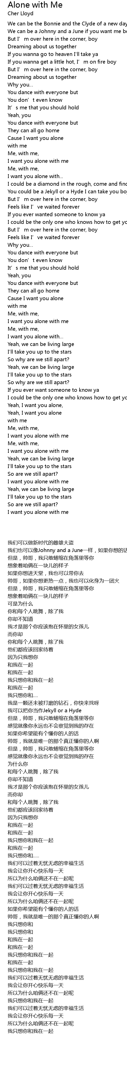 | [00:50.200] | Cause I want you alone |