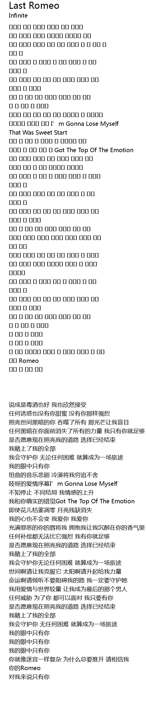 | [03:04.330] | 넌 마치 미로같이 복잡해 왜 자꾸만 밀어내 날 믿어 너의 Romeo |