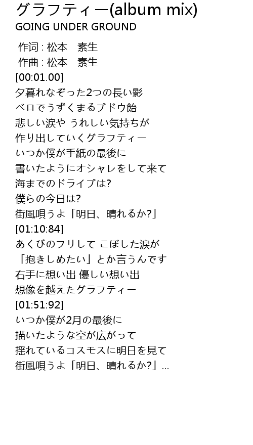 | [00:00.000] | 作词 : 松本 素生 |