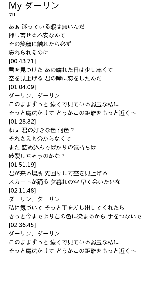 | [03:04.45] | そっと魔法かけて どうかこの距離をもっと近くへ |