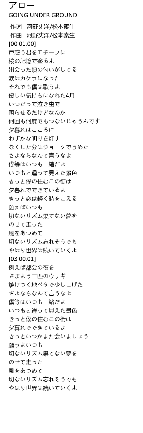| [00:00.000] | 作词 : 河野丈洋/松本素生 |
