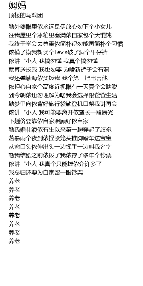 | [03:05.55] | 养老 |