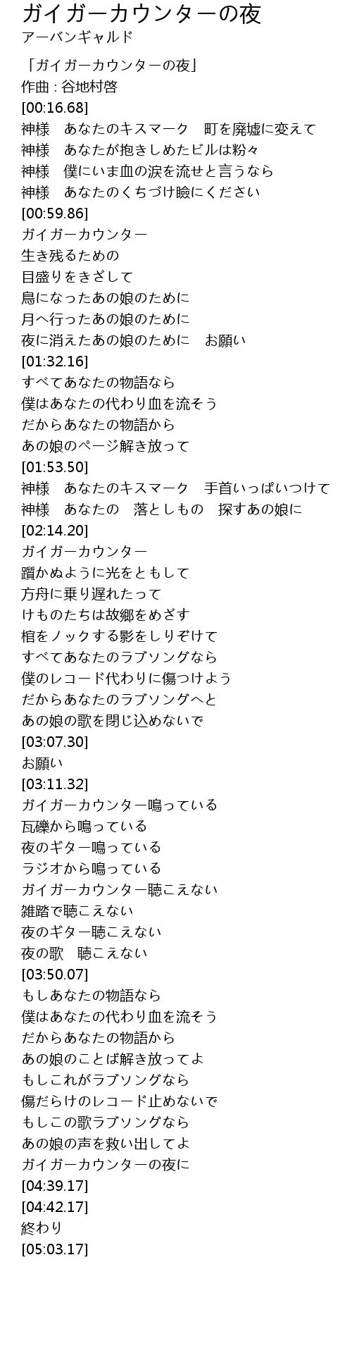 | [04:31.15] | ガイガーカウンターの夜に |