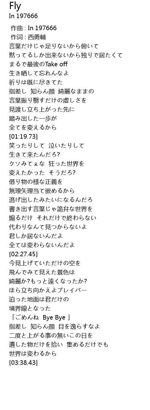| [03:10.19] | 「ごめんね Bye Bye 」 |