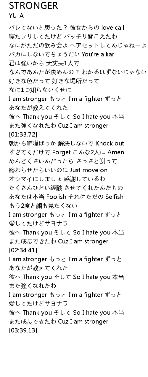| [03:19.01] | I am stronger もっと I'm a fighter ずっと |