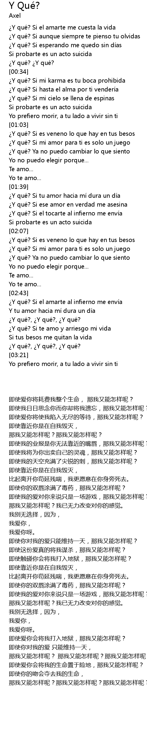 | [00:12] | Y qué? Si el amarte me cuesta la vida |