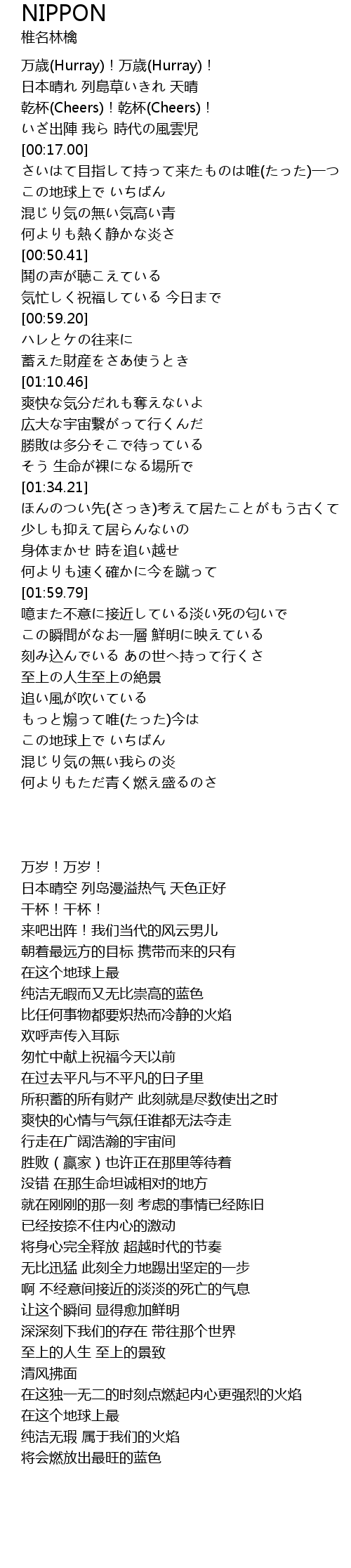 | [00:05.84] | 万歳(Hurray)!万歳(Hurray)! |