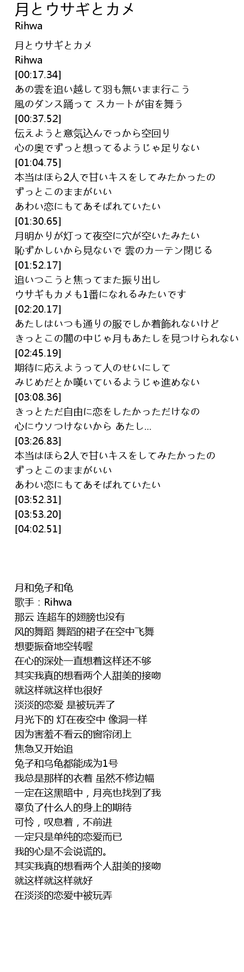 | [00:00.07] | 月とウサギとカメ |