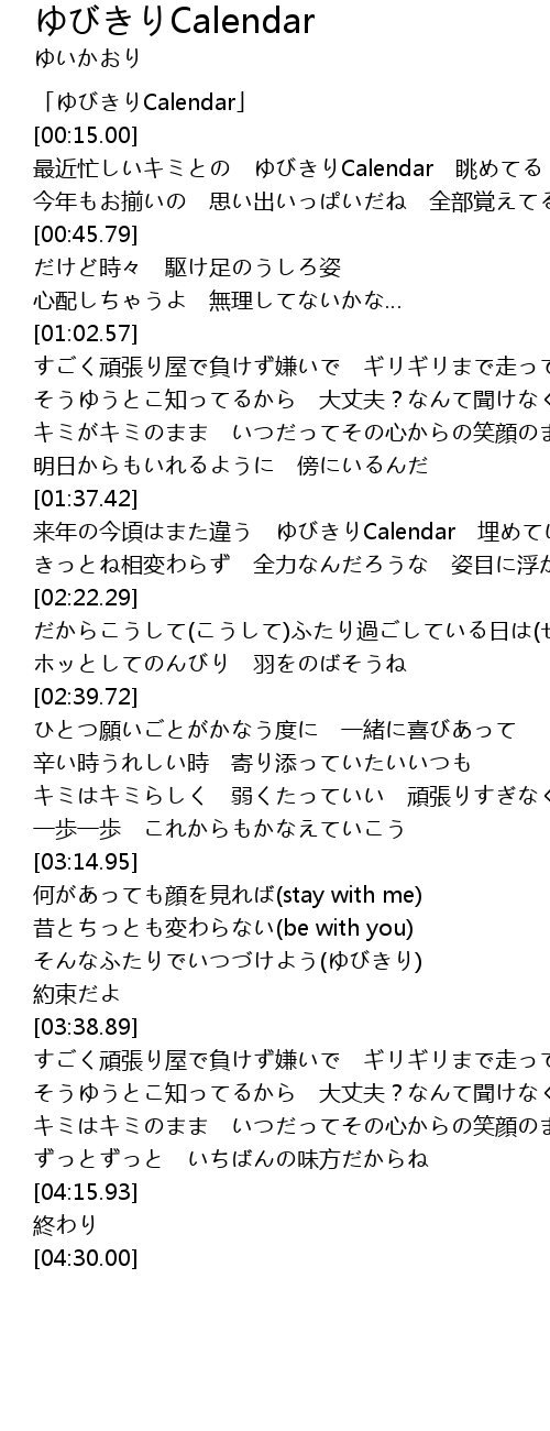 | [00:00.00] | 「ゆびきりCalendar」 |