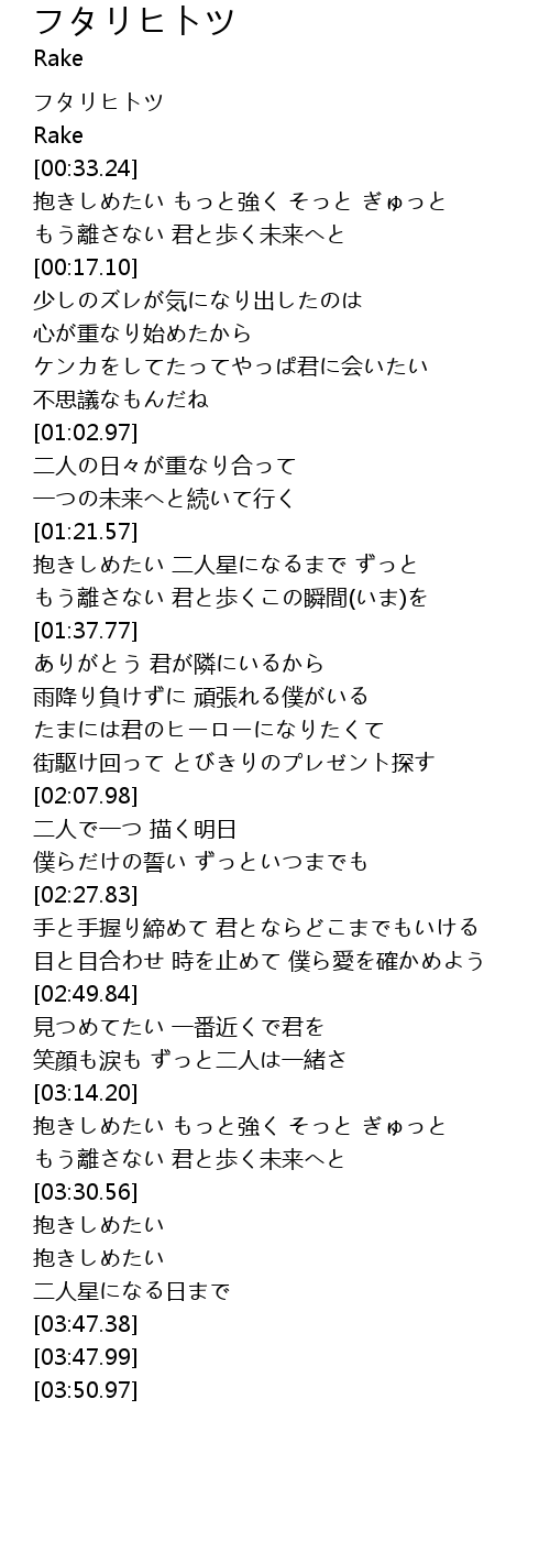 | [00:18.07] | フタリヒトツ |