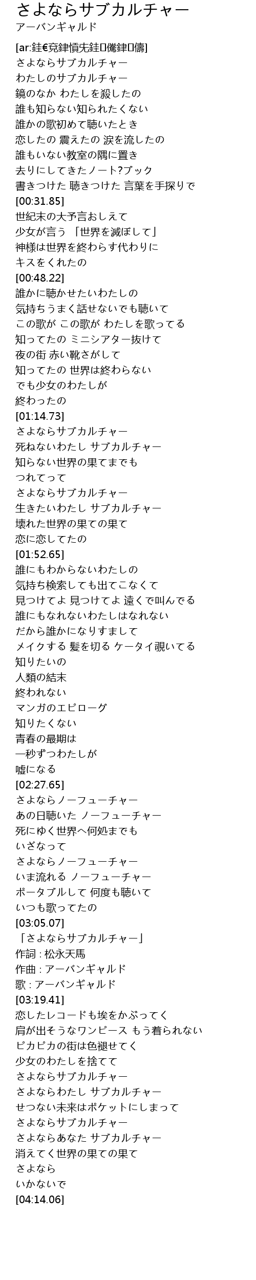 | [03:37.35] | さよならサブカルチャー |
