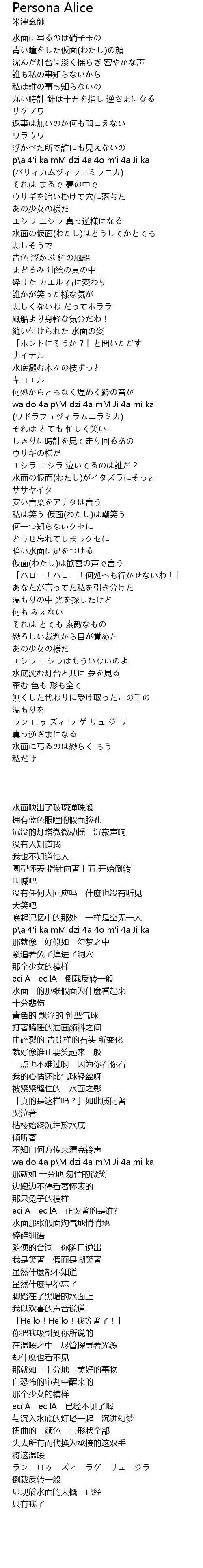 | [02:20.77] | wa do 4a p\M dzi 4a mM Ji 4a mi ka (ワドラフュヅィラムニラミカ) |