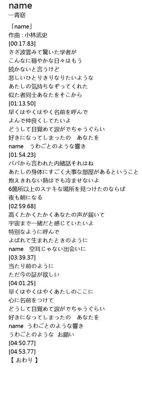 | [00:01.83] | 「name」 |