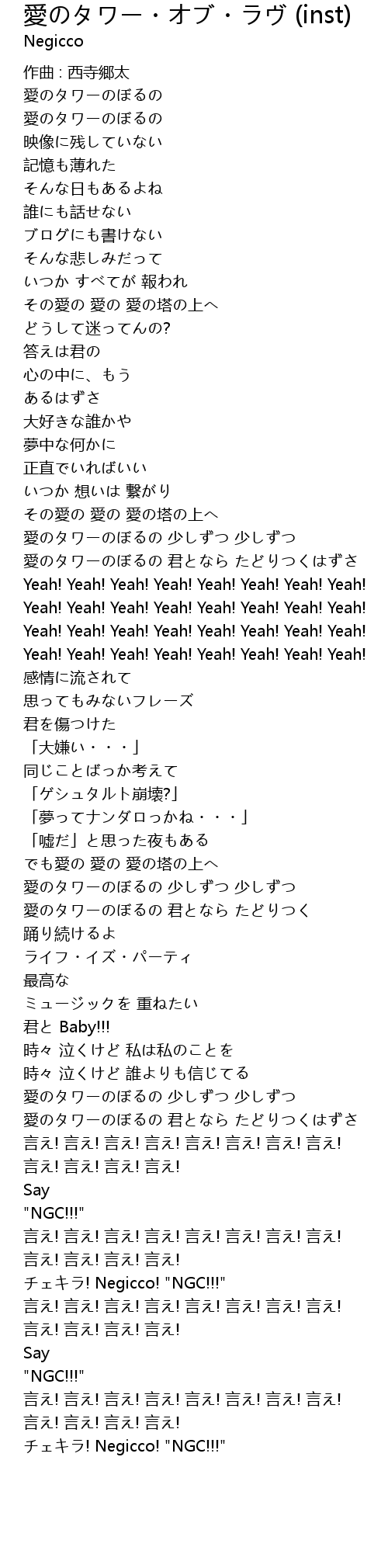 | 愛のタワーのぼるの 君となら たどりつく | |