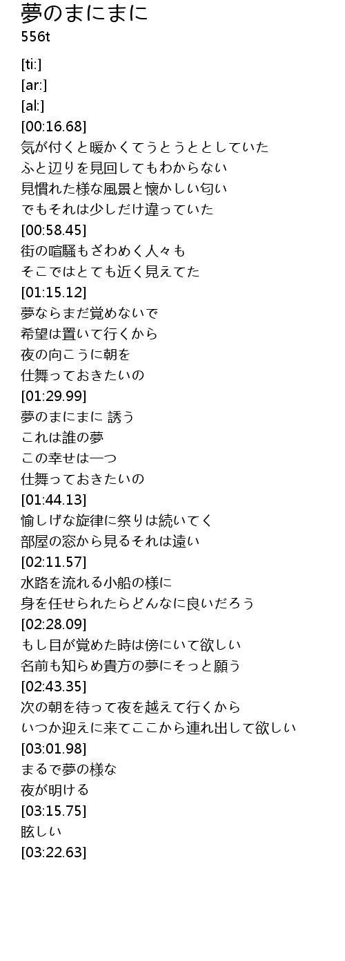 | [03:04.61] | まるで夢の様な |