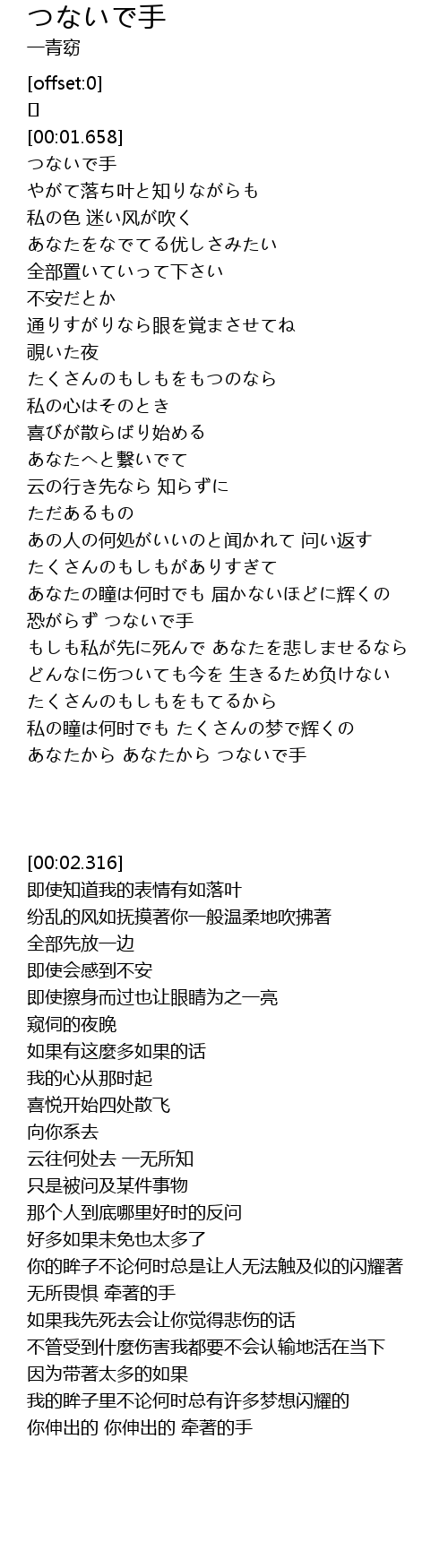 | [02:22.949] | 无所畏惧 牵著的手 |