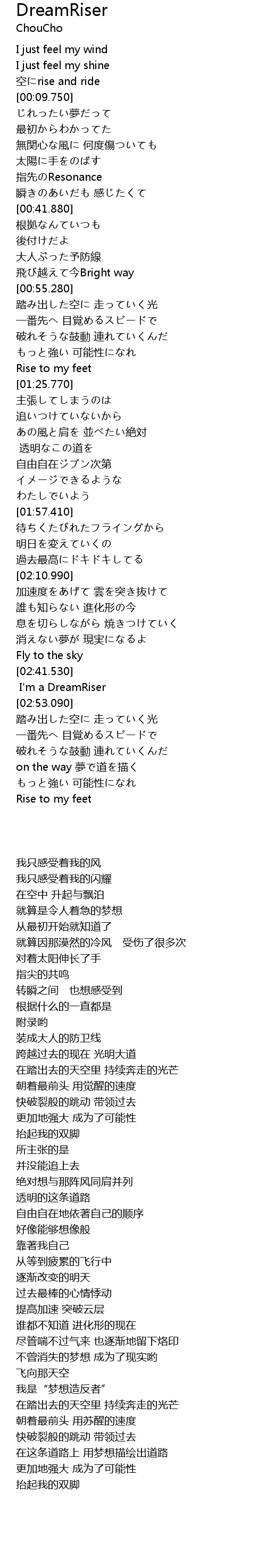 | [02:12.250] | 加速度をあげて 雲を突き抜けて |