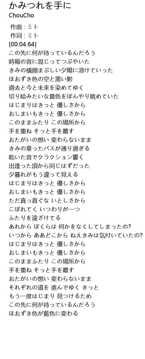 | [02:59.63] | おたがいの想い 変わらないまま |