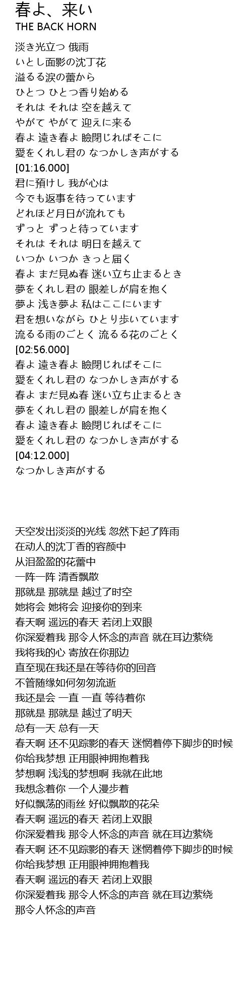 | [03:48.000] | 春天啊 遥远的春天 若闭上双眼 |