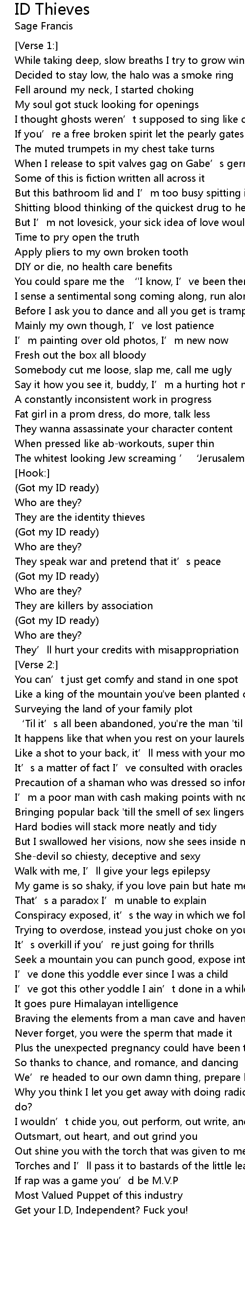 | 歌曲 | ID Thieves |