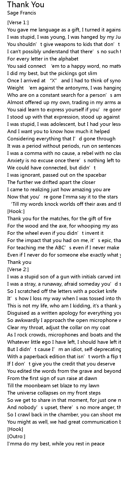 | I was stupid, I was adolescent, but I had your lessons to cling on to | |