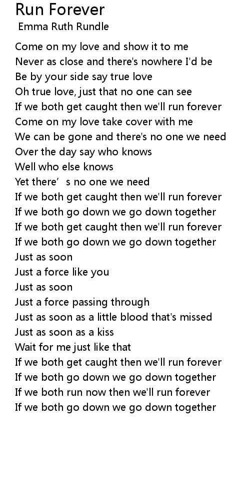 | If we both run now then we'll run forever | |