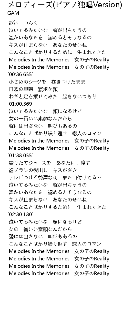 | [01:32.565] | Melodies In the Memories 女の子のReality |