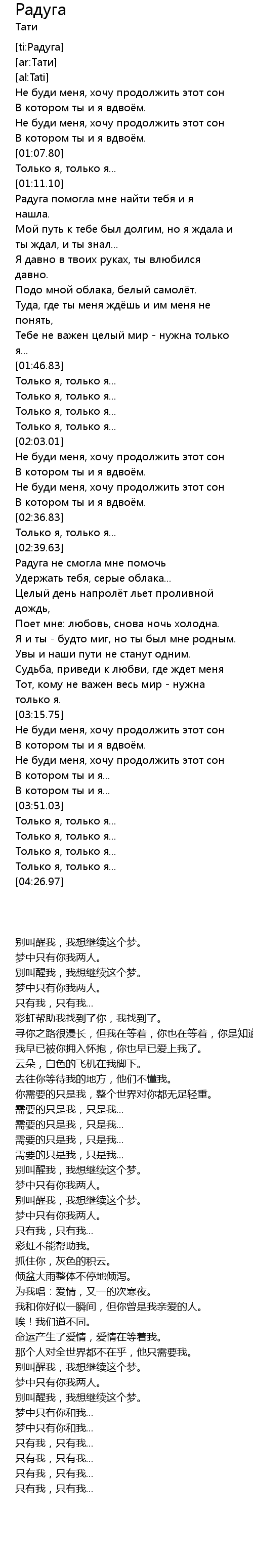 | [02:06.83] | Не буди меня, хочу продолжить этот сон |
