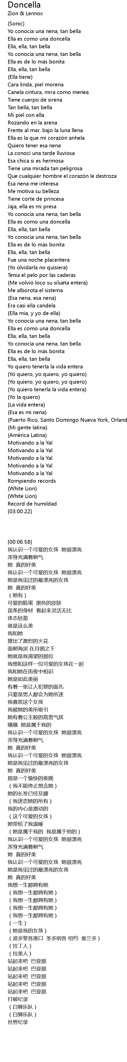| [01:19.12] | Yo conoci a una nena, tan bella |