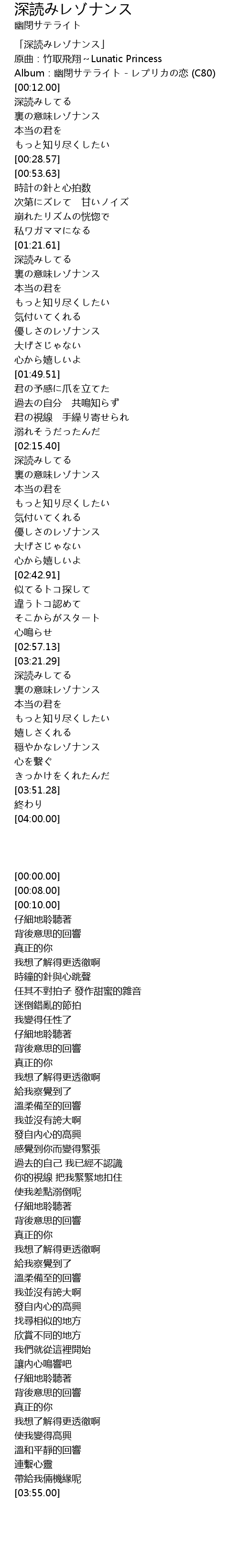 | [00:00.00] | 「深読みレゾナンス」 |