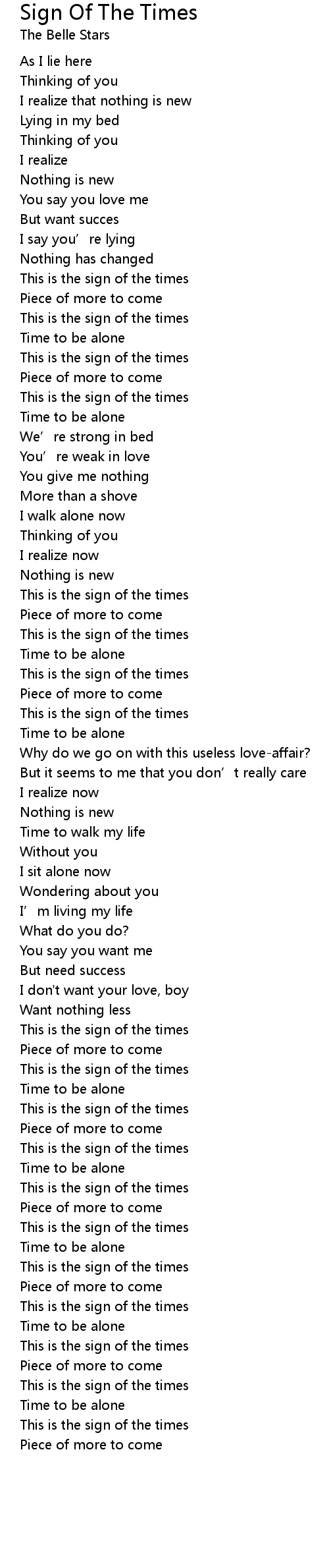 | 歌曲 | Sign Of The Times |